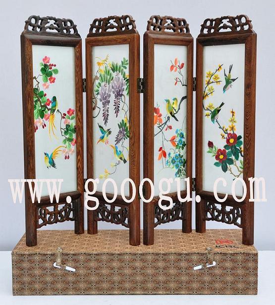 蘇繡四折屏風 雙面繡小屏風 中國工商銀行禮品 外事商務(wù)禮物