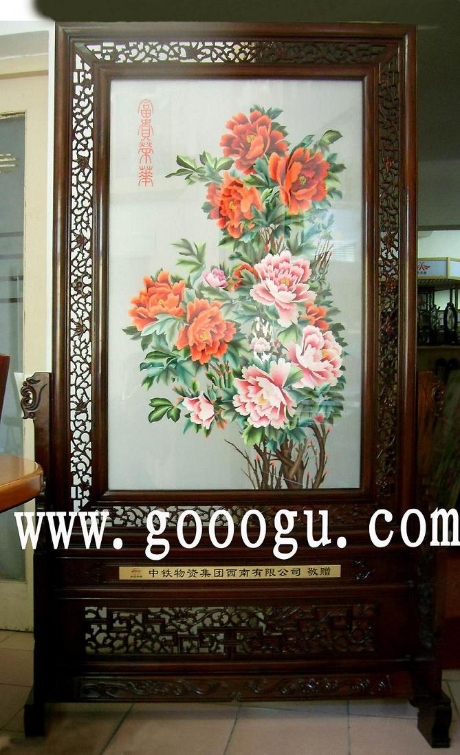 大型牡丹刺繡屏風(fēng)&雙面繡落地屏風(fēng)&單位開業(yè)慶典---嘉善藍(lán)森機(jī)械公司贈(zèng)