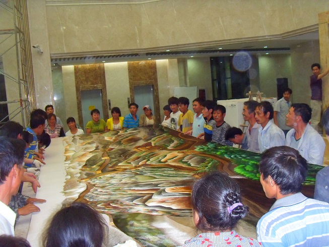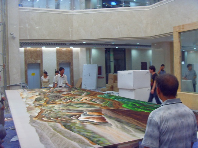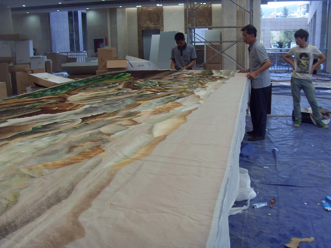 貴州盤江精煤股份有限公司是1999年經(jīng)貴州省人民政府批準(zhǔn),由盤江煤電集團(tuán)公司作為主發(fā)起人,聯(lián)合中煤進(jìn)出口公司、貴陽特鋼公司、防城港務(wù)局等七家單位共同發(fā)起設(shè)立的股份制企業(yè),盤江股份于2001年5月在上交所正式掛牌交易。 公司是盤江礦區(qū)煤炭開發(fā)主體。盤江礦區(qū)是我國十二五規(guī)劃建設(shè)的全國14個(gè)大型煤炭生產(chǎn)基地之一。礦區(qū)因與云南富源、宣威接壤,地處中國攀西六盤水這個(gè)資源富集金三角的最南端,又以豐富的煤炭資源稱冠江南,被譽(yù)為金三角下的一顆明珠。 2013年7月盤江股份集團(tuán)大樓新址即將完工,蘇州嬌古蘇繡負(fù)責(zé)承建新大樓一樓的刺繡隔斷工程,在時(shí)間有限的情況下,嬌古蘇繡負(fù)責(zé)人接到通知后緊鑼密鼓的安排各道工序,工藝師們都在加班加點(diǎn),在時(shí)間有限的情況下高效率的完成了任務(wù),6月底,嬌古蘇繡安排工作人員前往盤江股份集團(tuán)所在地貴州,為整體隔斷工程進(jìn)行裝裱并指導(dǎo)安裝。在經(jīng)過大家相互配合的情況下,隔斷的主體工程已經(jīng)安裝就位,盤江股份集團(tuán)公司的領(lǐng)導(dǎo)對(duì)嬌古蘇繡工作人員高效率的完成任務(wù)給予高度的評(píng)價(jià),對(duì)刺繡工程的整體效果也是非常滿意。