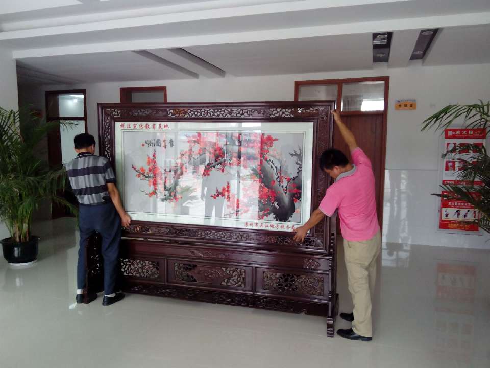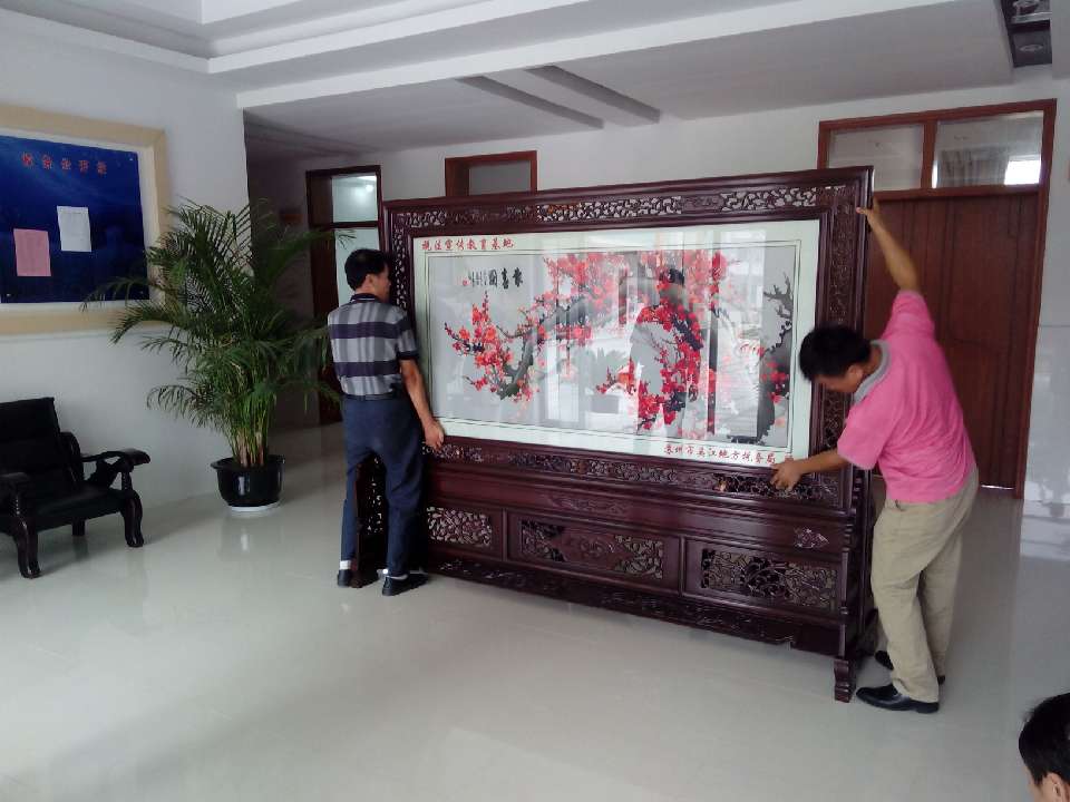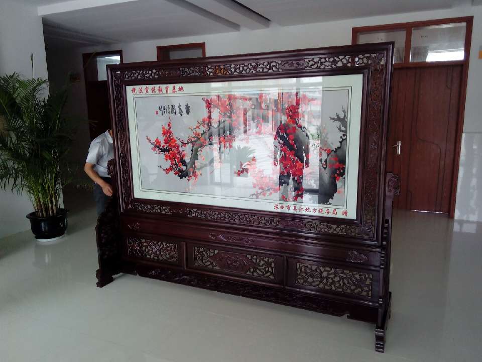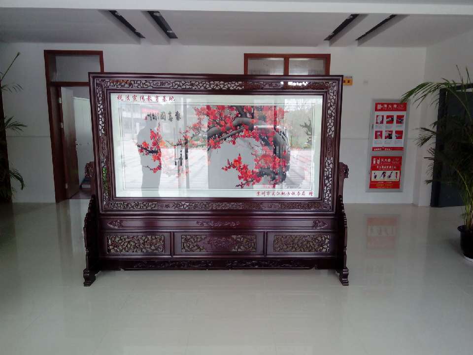 為了加強稅法教育的宣傳工作,蘇州吳江橫扇小學被設立為稅法宣傳教育基地,為此,蘇州吳江地方稅務局為了更好的普及稅法知識和積極做好宣傳工作,在蘇州嬌古蘇繡藝術(shù)品有限公司特定了一款梅花報春圖的雙面繡屏風,屏風已順利完工,現(xiàn)由嬌古蘇繡工作人員送抵吳江橫扇小學并進行安裝。