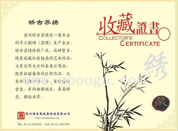 蘇州嬌古蘇繡坐落于蘇州吳中地區(qū),所有產(chǎn)品都是純手工制作,公司集研發(fā)、制作、銷售與一體,在嬌古設(shè)有大型的蘇繡展廳,將行業(yè)內(nèi)高檔的精品蘇繡展現(xiàn)在蘇繡愛好者的面前。今年也是蘇州嬌古蘇繡感到榮幸的一年,今年是中華人民共和國成立64周年,嬌古蘇繡應(yīng)美國孫中山思想研究會會長肖松林的邀請,制作了一副歷史巨作《沁園春 ?!废蚪▏?4周年獻(xiàn)禮。 |