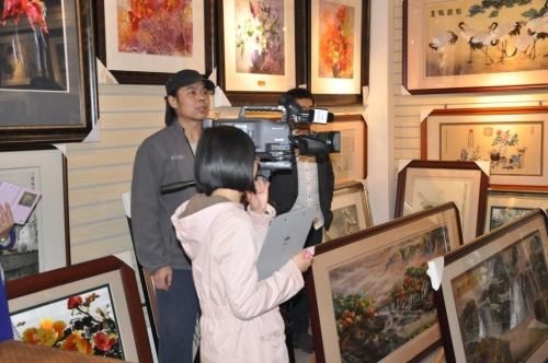 在嬌古蘇繡作品展示廳,央視欄目組一行參觀并拍攝的蘇繡雙面繡經(jīng)典作品,面對(duì)栩栩如生的動(dòng)物、花草樹木和人物肖像雙面繡,欄目組一行贊不絕口,并聽取了嬌古蘇繡工藝美術(shù)師瞿紅芬、陳華芬關(guān)于制作工藝的介紹。在介紹中,兩位工藝師還現(xiàn)場(chǎng)演示了雙面繡針法,當(dāng)?shù)弥p面繡針法居然多達(dá)50余種,花線精確到1/16的“一絲”時(shí),欄目組成員均感到十分驚訝,并對(duì)工藝師巧奪天工的技藝贊不絕口。