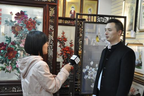 在接受記者采訪(fǎng)時(shí),嬌古蘇繡的總經(jīng)理張奇?zhèn)ハ壬劦教K繡作為一種民族的工藝應(yīng)該得到更好的傳承和發(fā)展,對(duì)這次央視能夠關(guān)注蘇繡的發(fā)展,張總表示非常的高興。嬌古蘇繡作為一家手工刺繡的制作企業(yè),研發(fā)了很多刺繡類(lèi)的工藝品,將現(xiàn)代技術(shù)與傳統(tǒng)文化結(jié)合起來(lái)也是一直在努力。