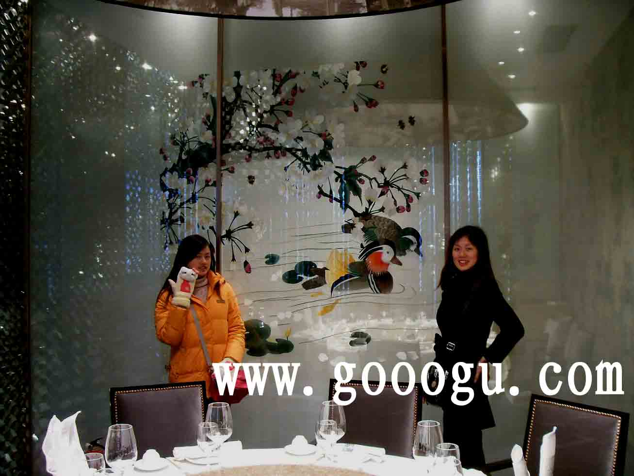 (一) 應(yīng)用行業(yè)及人群 大型酒店、別墅裝修、單位大廳裝飾等 (二) 商業(yè)用途 大型酒店定做包廂雙面繡隔斷、別墅定做玄關(guān)雙面繡隔斷、單位大型壁畫(huà)裝飾等 (三) 選擇理由 代表中國(guó)傳統(tǒng)的特色文化,雙面繡隔斷透明中滲透著傳統(tǒng)中國(guó)傳統(tǒng)文化元素! (四) 應(yīng)用案例 1. 蘇浙匯飯店為中國(guó)知名的高檔餐飲企業(yè),蘇浙匯蘇州園區(qū)店包廂裝飾隔斷選用嬌古蘇繡雙面繡,兩豪華包廂間用兩塊鋼化玻璃夾住雙面繡品做為隔斷,客人在享受美食的同時(shí)感受博大精深的中華傳統(tǒng)文化。
