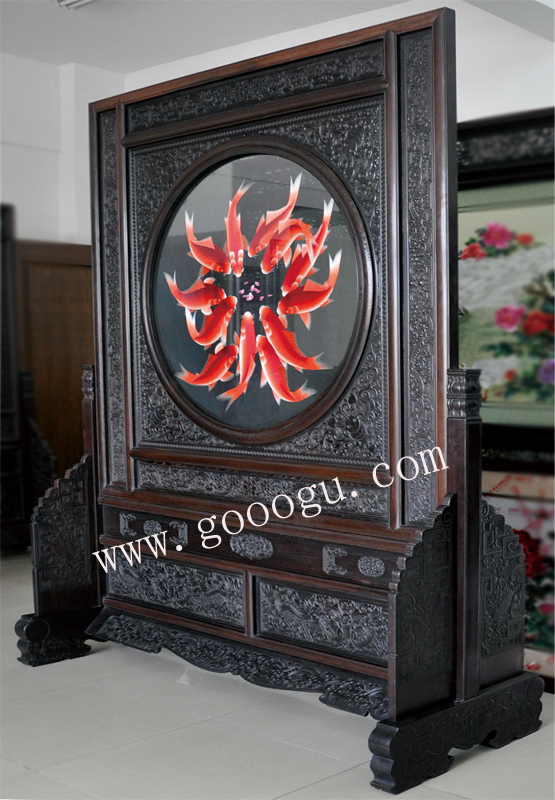 嬌古蘇繡木質屏風 玄關雙面繡 簡易大方 十二紅魚圖特色中國風