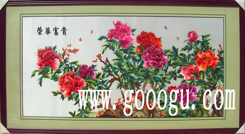 大型蘇繡牡丹裝飾畫&大型廳堂裝飾壁畫&手工刺繡富貴掛畫