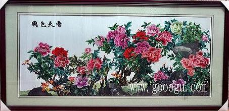 蘇繡裝飾壁畫/客廳裝飾畫/會客廳裝飾壁畫、國色天香牡丹圖