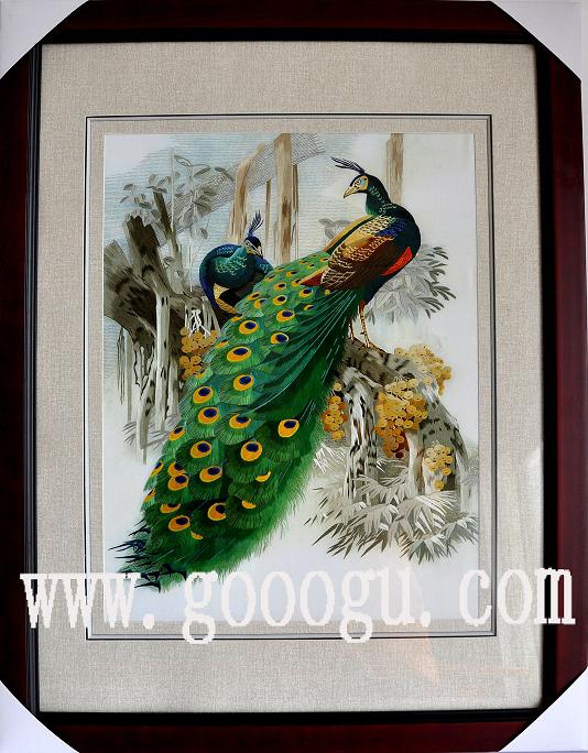 孔雀刺繡壁畫(huà)|蘇州刺繡掛畫(huà)|刺繡手工藝品