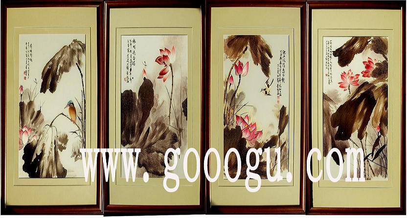 荷花風(fēng)情四件套裝蘇繡畫|手工藝裝飾畫|傳統(tǒng)居家畫