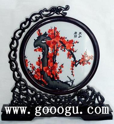 嬌古紫光檀20CM圓雙面繡外事禮品企業(yè)紀(jì)念品可定制LOGO