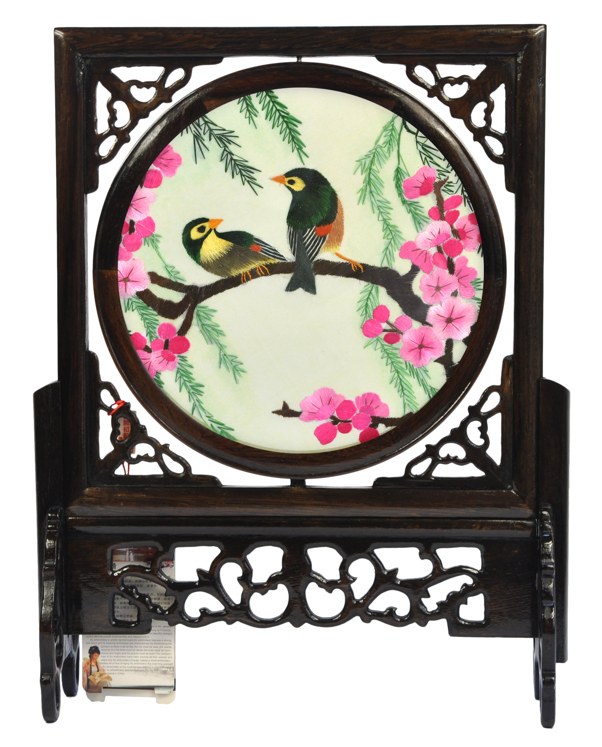 嬌古蘇繡16X25CM雞翅木雙面繡橫座屏,手工刺繡工藝品饋贈老外特色禮品