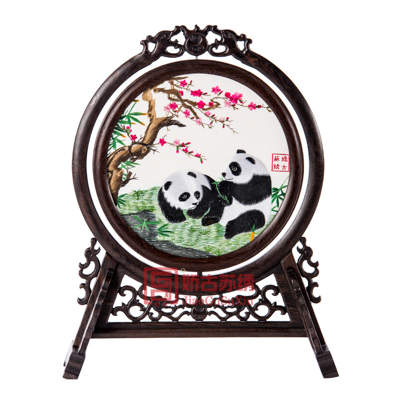 雙龍頭架雙面繡|蘇州刺繡禮品|企業(yè)定制刺繡禮品|定制企業(yè)LOGO禮品