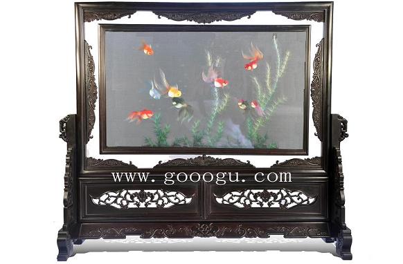 嬌古蘇繡木質(zhì)屏風(fēng) 玄關(guān)雙面繡 簡易大方 十二紅魚圖特色中國風(fēng)