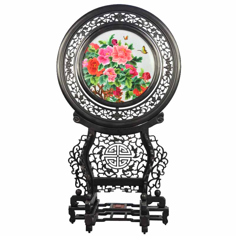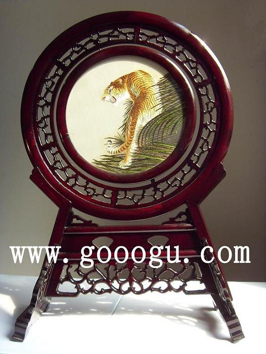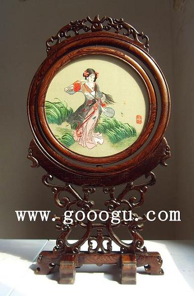 檀木同心圓雕花架蘇州雙面繡|手工刺繡品|傳統(tǒng)蘇繡