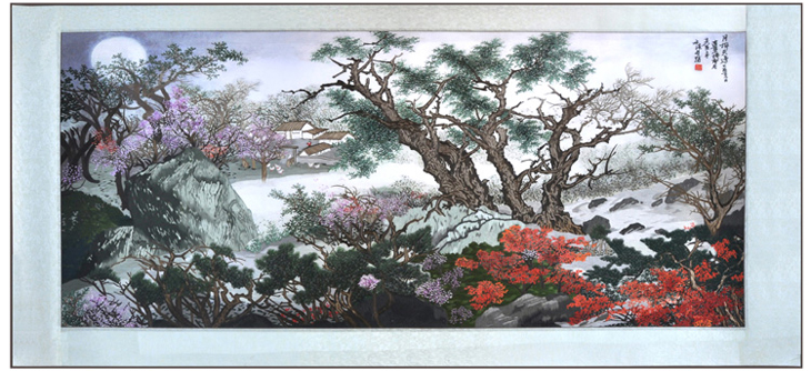 月掛天邊手工刺繡 蘇繡工藝品 單面繡 中國特色禮品 外事紀念品