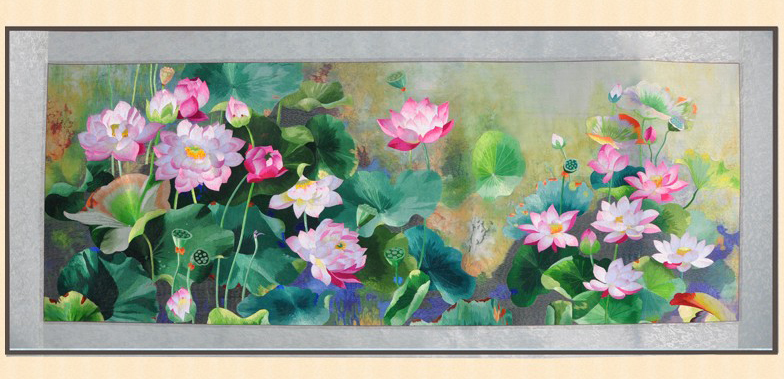 蘇繡荷塘 純手工刺繡 荷花 客廳臥室裝飾壁畫 送朋友