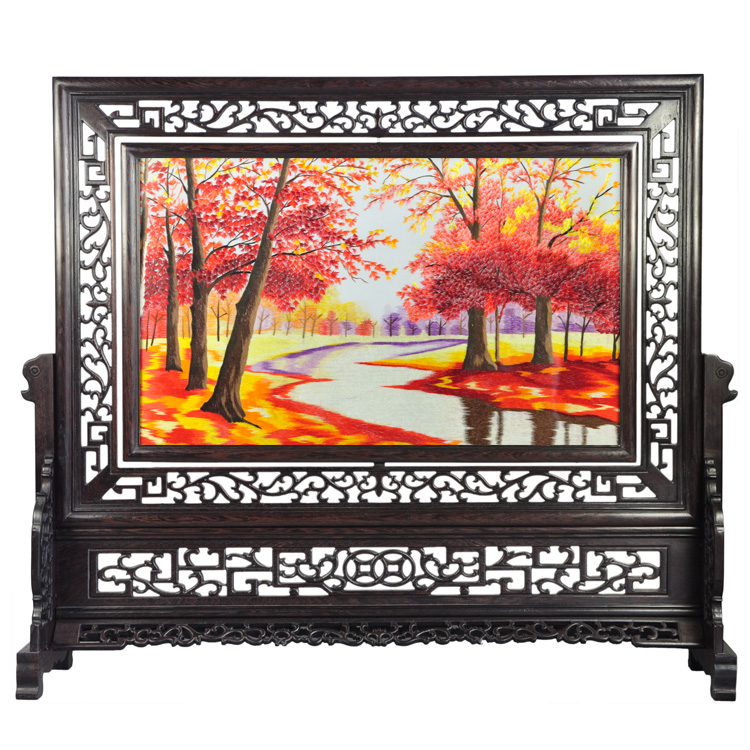 風(fēng)景刺繡畫(huà)紅色楓林成品手工刺繡成品特色蘇繡送外國(guó)人禮品