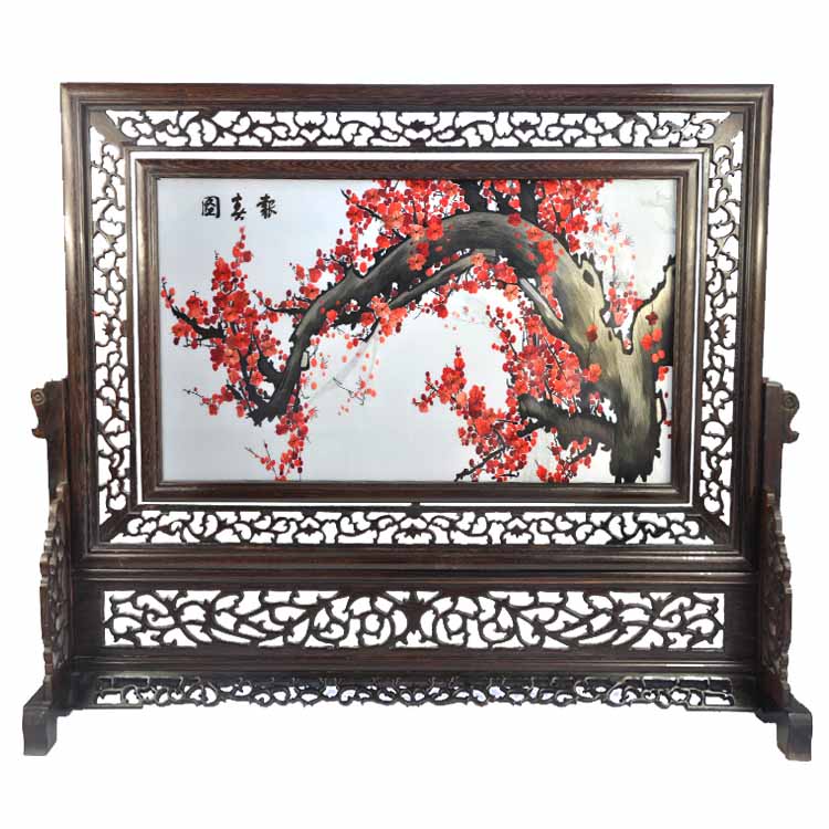報(bào)春圖雙面繡雞翅木居家擺設(shè)屏風(fēng)擺件雙面刺繡禮物