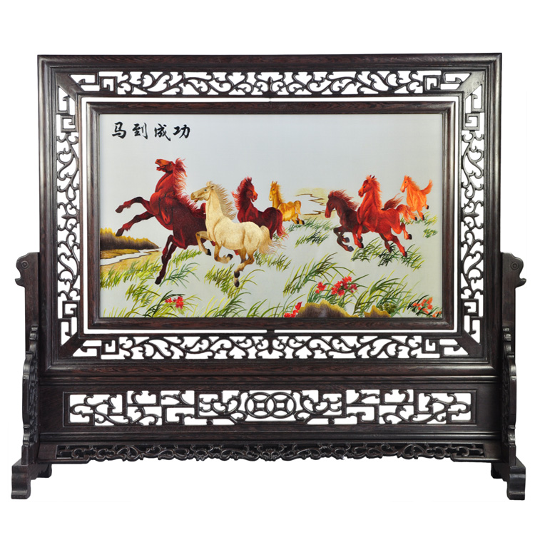 馬到成功蘇繡雙面繡手工刺繡節(jié)日裝飾品辦公室裝飾擺件喬遷禮品