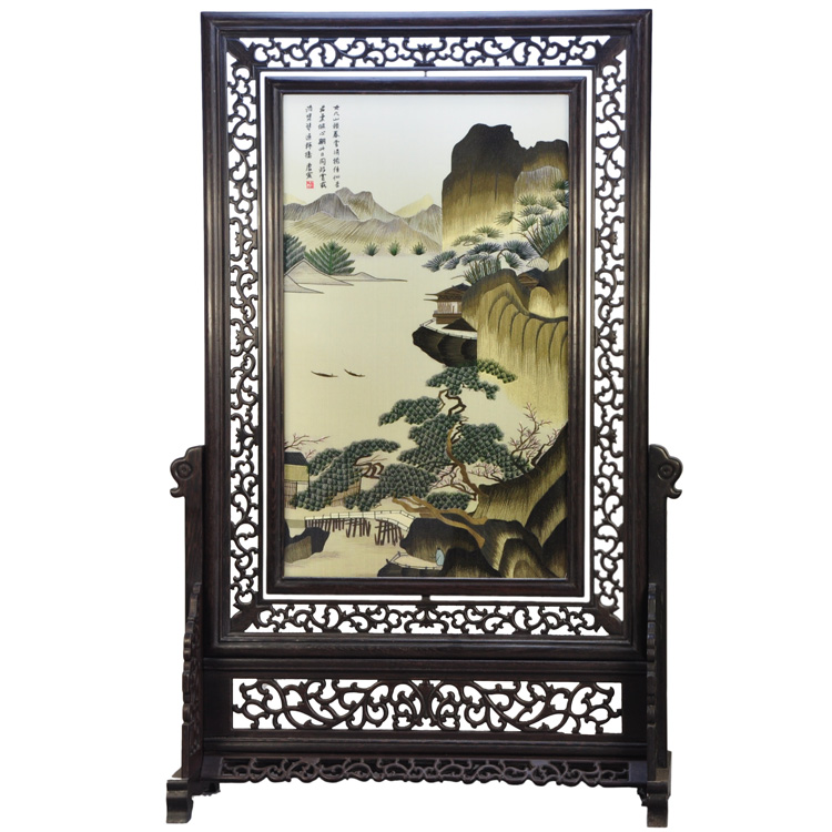 山水雙面繡大型雙面繡工藝擺件地屏中國(guó)特色禮品送老外
