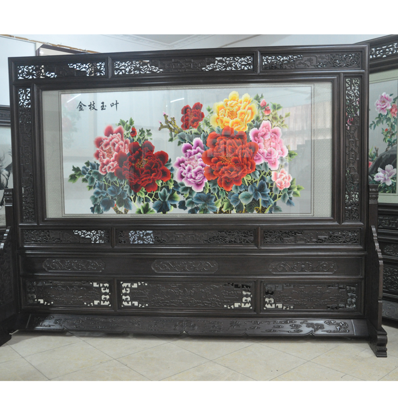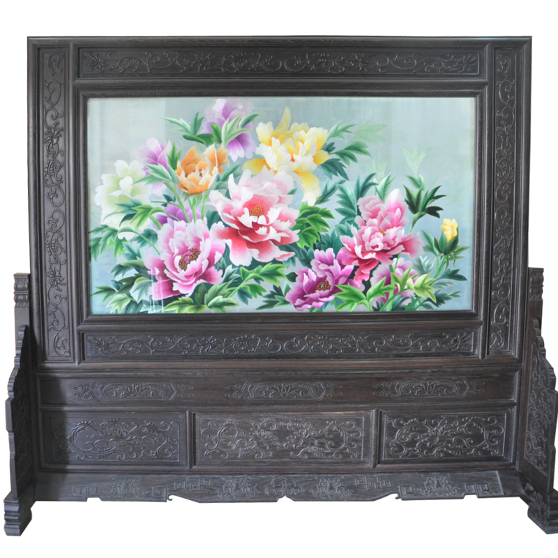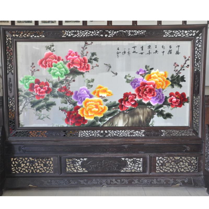 大型蘇繡屏風(fēng) 牡丹花高檔刺繡品 開業(yè)周年慶典禮品 大堂屏風(fēng)
