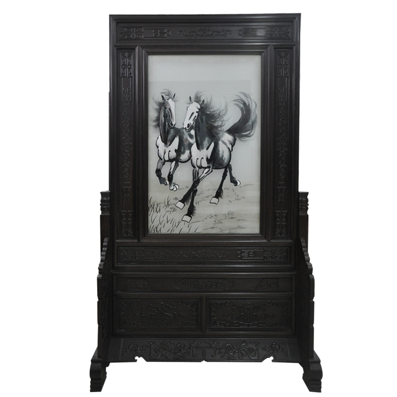 嬌古蘇繡玄關(guān)屏風(fēng) 馬到成功刺繡圖 家居隔斷 中式刺繡傳統(tǒng)工藝品