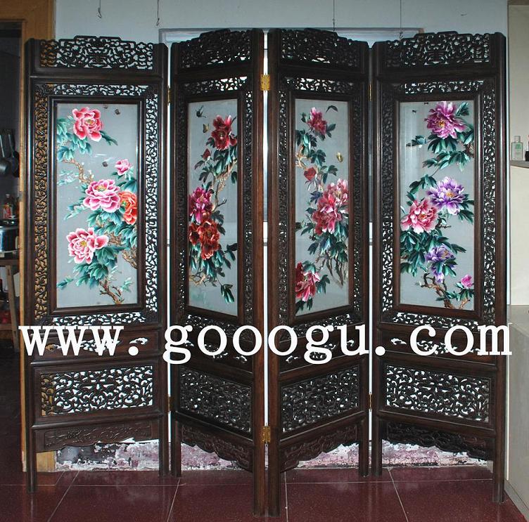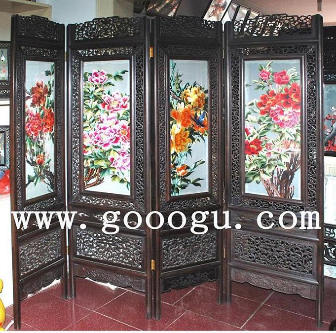 牡丹刺繡屏風(fēng)|工藝木雕屏風(fēng)|裝飾屏風(fēng)