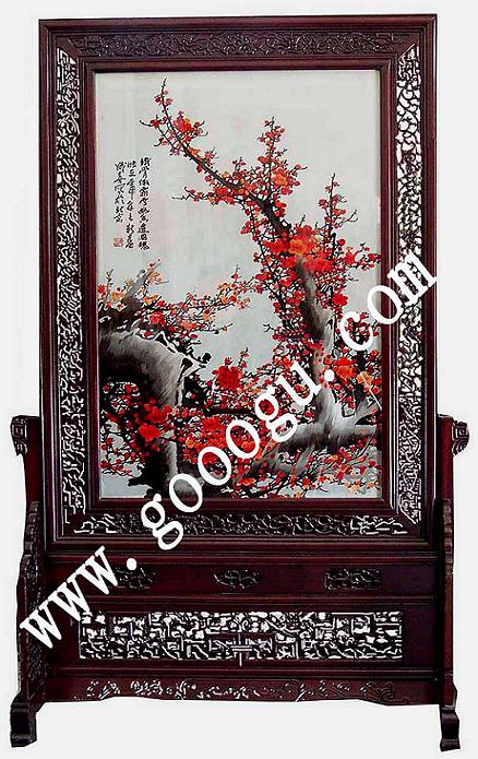 小型梅花刺繡屏風(fēng)|蘇州刺繡|雙面刺繡屏風(fēng)