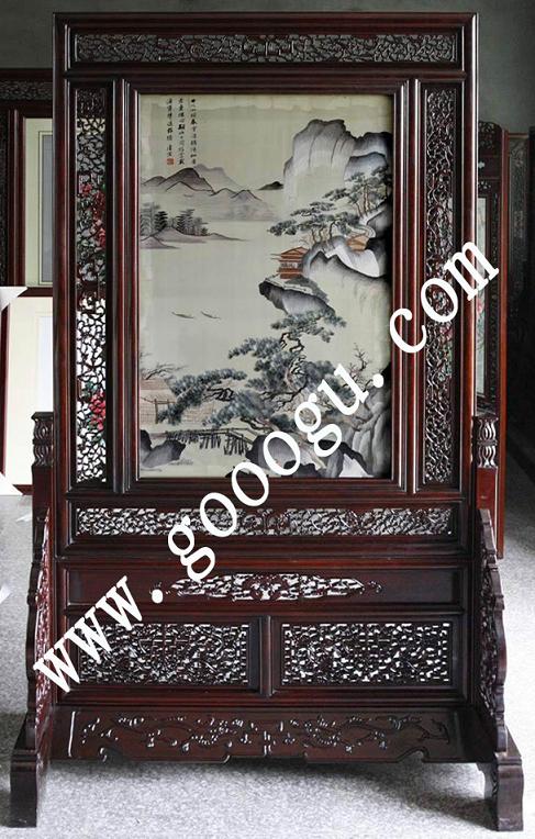 唐寅山水屏風(fēng)|手工雙面繡屏風(fēng)|木雕屏風(fēng)