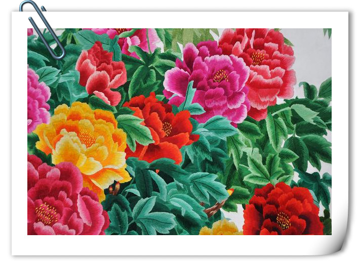 【蘇繡名稱(chēng)】:牡丹富貴圖裝飾壁畫(huà) 【蘇繡規(guī)格】:60*160(圖案尺寸) 85*200CM(外框尺寸) 【蘇繡工藝】:手工刺繡 【外框材質(zhì)】:實(shí)木框拉丁木 【絲線(xiàn)材質(zhì)】:蠶絲線(xiàn) 【蘇繡檔次】:6-8絲刺繡。 【嬌古蘇繡出廠價(jià)】:5500元(含運(yùn)費(fèi)) 【發(fā)貨方式】:由我司安排發(fā)往客人指定地點(diǎn) 【作品介紹】:牡丹,一直是中國(guó)傳統(tǒng)工筆花鳥(niǎo)畫(huà)中的經(jīng)典題材。這幅嬌古蘇繡的工筆畫(huà)《富貴圖》,整個(gè)畫(huà)面顏色濃郁,針線(xiàn)流暢自然;畫(huà)中花紅葉綠的巧妙搭配盡顯牡丹的國(guó)色天香,具有詩(shī)意,是一幅非常具有中國(guó)傳統(tǒng)文化特色精品工筆畫(huà)作。這幅畫(huà)從不同的角度表現(xiàn)出牡丹的高貴與典雅,盡顯工筆畫(huà)的神韻之美。 【細(xì)節(jié)欣賞】 .jpg)