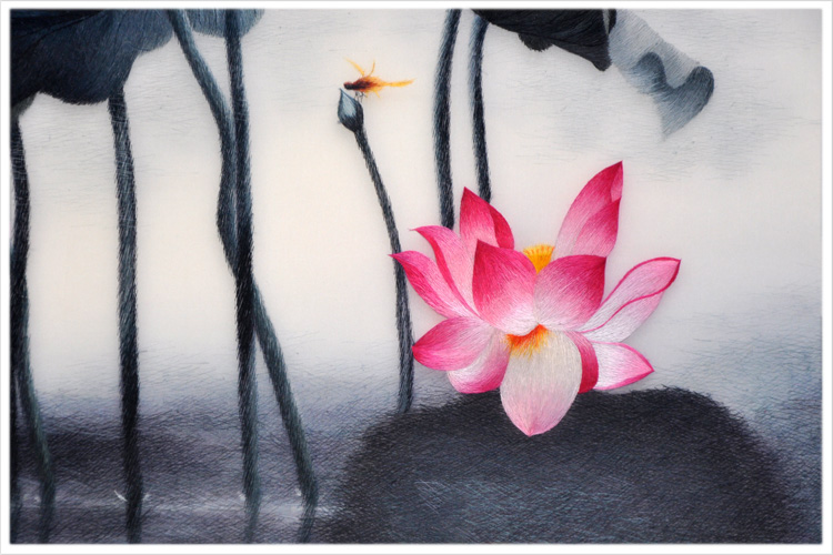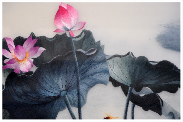 【品 牌】:嬌古 (作品代碼 D-1026) 【品 名】:水墨荷花裝飾畫 【品 質】:2-4絲刺繡 (蘇繡小知識:1根蘇繡絲線可分為16絲,中檔刺繡皆為10絲所繡,中高檔刺繡皆為6-8絲,高檔刺繡皆為4-6絲,精品刺繡皆為1-4絲) 【尺 寸】:畫心尺寸60*60cm 整體尺寸90*90cm 【產(chǎn)品工藝】:手工刺繡 【絲線材質】:蠶絲線 真絲面料 【用 途】:政府禮品、外賓禮品、生日禮物、賀壽禮品、領導升遷、出國禮品等等。 【出廠價格】:4800元 【細節(jié)圖】