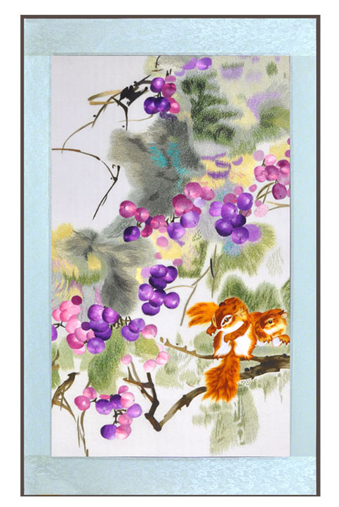 【用 途】:生日禮物、賀壽禮品、領(lǐng)導(dǎo)升遷、商務(wù)禮品等等。 【出廠價(jià)】:1280元 【作品介紹】:葡萄,自古就是文人畫家們吟詠歌頌的對(duì)象,在果品中,葡萄的資歷最老,據(jù)古生物學(xué)家考證,在新生代第三地層內(nèi)就發(fā)現(xiàn)了葡萄葉和種子的化石,證明距今六百五十多萬(wàn)年前就已經(jīng)有了葡萄。有的學(xué)者認(rèn)為在23000萬(wàn)年前至6700萬(wàn)年前就有類似葡萄的植物。葡萄畫有多子多孫之意,是家居字畫裝飾中常見(jiàn)的吉利風(fēng)水字畫,宜放在客廳主沙發(fā)后面的墻上,既雅致清新,又別具裝飾性。同時(shí)也是賓館/旅館 ,酒店/飯店裝飾字畫不錯(cuò)的選擇。 細(xì)節(jié)一