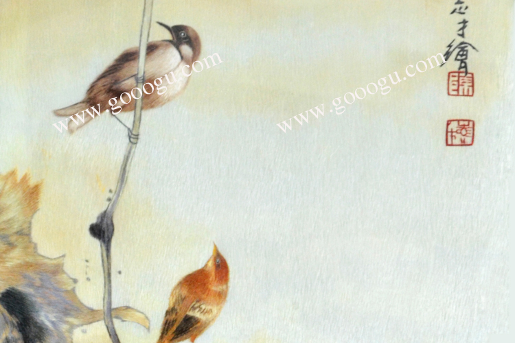 【產(chǎn)品名稱】:花鳥折疊屏風---陳志才花鳥(雙面繡) (作品代碼:ZP-1002) 【產(chǎn)品規(guī)格】:圖案尺寸寬40CM每扇,高100CM每扇 外框整體尺寸寬65cm每扇,高205cm每扇 【產(chǎn)品工藝】:手工刺繡 【產(chǎn)品材質(zhì)】:真絲面料+純天然雞翅木框+桑蠶絲線+玻璃 【產(chǎn)品包裝】:木箱包裝,用海綿包扎,確保運輸安全 【出廠價】:54800元 【產(chǎn)品運輸】:我司負責發(fā)往客戶指定地點,蘇州附近城市可送貨上門! 【產(chǎn)品說明】:此款純天然雙面繡折疊屏風,采用進口的雞翅木為框架材料,做工精細,整幅作品是由蘇州工藝師耗時數(shù)月手工刺繡而成,刺繡圖案繡工精細,顏色搭配均勻,整體給人舒適,愜意之感,木雕細膩精美,是蘇繡屏風中的經(jīng)典作品。是貴賓接待室或大廳的重要裝飾品之一!歡迎親臨嬌古蘇繡展示廳觀看實物! 【作品欣賞】 .jpg) 陳志才花鳥特寫 .jpg)