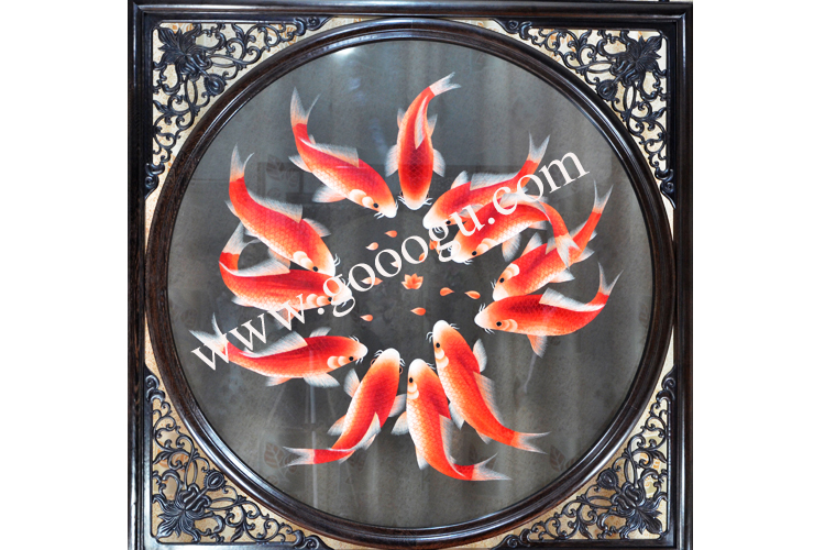 【產(chǎn)品名稱(chēng)】:蘇繡蘇繡屏風(fēng)---十二紅魚(yú)(雙面繡) (作品代碼:P-1066) 【產(chǎn)品規(guī)格】:圖案尺寸直徑為100cm的圓 外框整體尺寸寬175cm,高215cm 【產(chǎn)品工藝】:手工刺繡 【產(chǎn)品材質(zhì)】:真絲面料+雞翅木框+桑蠶絲線(xiàn)+玻璃 【產(chǎn)品包裝】:木箱包裝,用海綿包扎,確保運(yùn)輸安全 【出廠(chǎng)價(jià)】:26000元 【產(chǎn)品運(yùn)輸】:我司負(fù)責(zé)發(fā)往客戶(hù)指定地點(diǎn),蘇州附近城市可送貨上門(mén)! 【產(chǎn)品說(shuō)明】:此款雙面繡屏風(fēng),是由蘇州工藝師耗時(shí)數(shù)個(gè)月精心手工刺繡而成,刺繡圖案以中國(guó)傳統(tǒng)的魚(yú)為題材繡工精細(xì),顏色搭配均勻過(guò)渡自然,整體給人舒適,愜意之感,屏風(fēng)的框架選用進(jìn)口的雞翅木為料,是蘇繡屏風(fēng)中的經(jīng)典作品。是企事業(yè)大堂或大廳的重要裝飾品之一!歡迎親臨嬌古蘇繡展示廳觀(guān)看實(shí)物! 【作品欣賞】 .jpg)