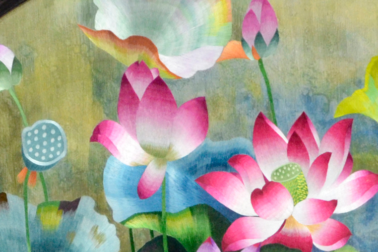【產(chǎn)品名稱(chēng)】:滿(mǎn)繡荷花屏風(fēng) (作品代碼:P-1098) 【產(chǎn)品規(guī)格】:圖案尺寸為100cm直徑的圓 外框整體尺寸寬160cm,高210cm 【產(chǎn)品工藝】:手工刺繡 【產(chǎn)品材質(zhì)】:真絲面料+雞翅木框+桑蠶絲線(xiàn)+玻璃 【產(chǎn)品包裝】:木箱包裝,用海綿包扎,確保運(yùn)輸安全 【出廠(chǎng)價(jià)】:36800元 【產(chǎn)品運(yùn)輸】:我司負(fù)責(zé)發(fā)往客戶(hù)指定地點(diǎn),蘇州附近城市可送貨上門(mén)! 【產(chǎn)品說(shuō)明】:此款雙面繡屏風(fēng),是由蘇州工藝師耗時(shí)三個(gè)月精心手工刺繡而成,刺繡圖案以荷花為題材繡工精細(xì),顏色搭配均勻過(guò)渡自然,整體給人舒適,愜意之感,屏風(fēng)的框架選用雞翅木為料,是蘇繡屏風(fēng)中的經(jīng)典作品。是家用玄關(guān)或辦公室玄關(guān)的雅致禮品!歡迎親臨嬌古蘇繡展示廳觀看實(shí)物! 【作品欣賞】 .jpg)