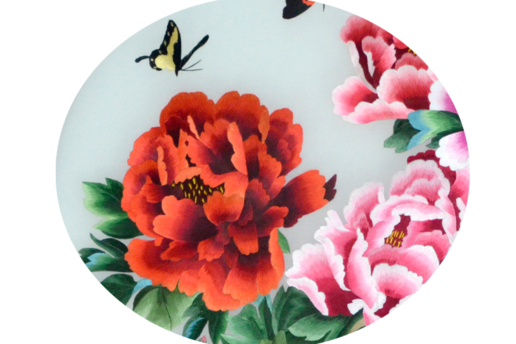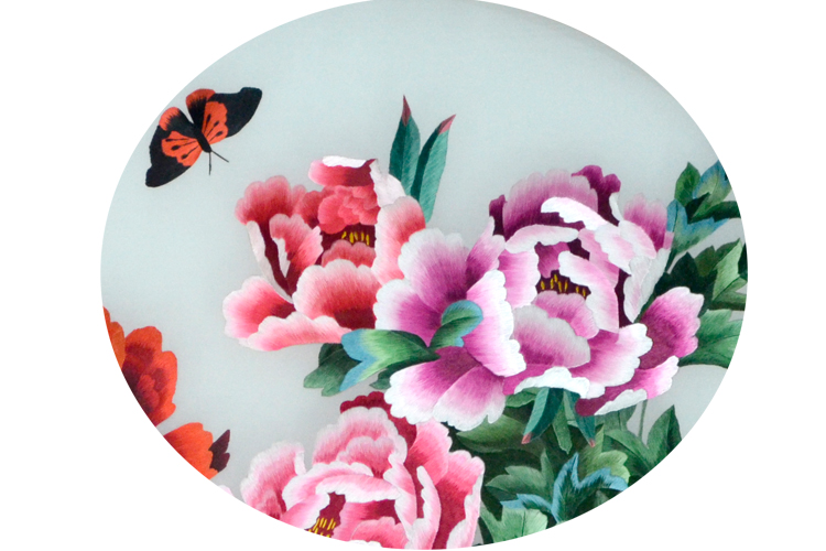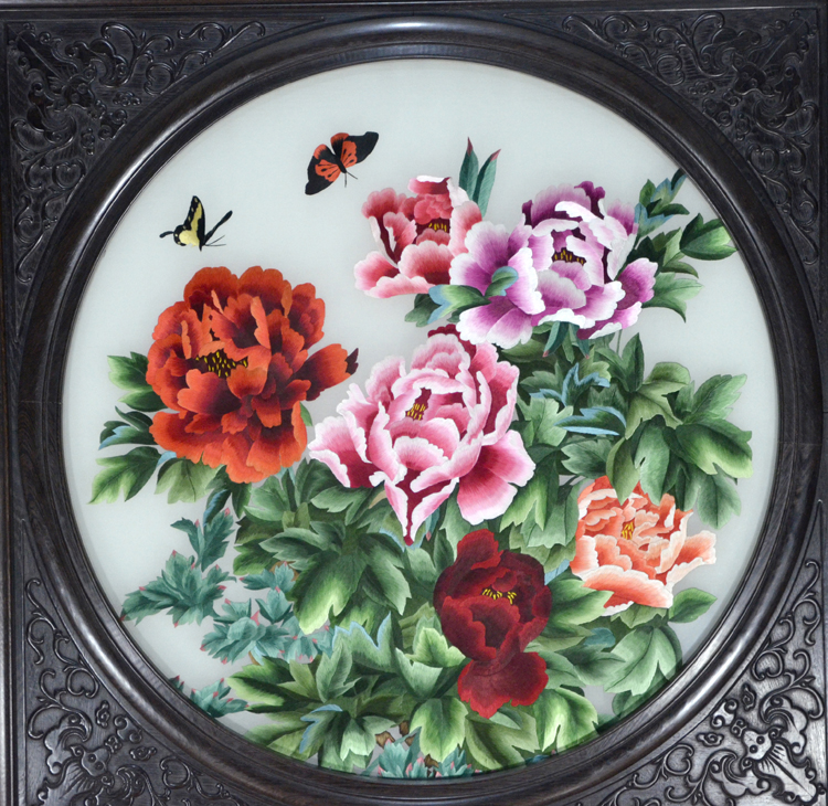 【產(chǎn)品名稱】:蘇繡牡丹屏風(fēng)(雙面繡) (作品代碼:P-1107) 【產(chǎn)品規(guī)格】:圖案尺寸以80cm為直徑的圓 外框整體尺寸寬140cm,高193cm 【產(chǎn)品工藝】:手工刺繡 【產(chǎn)品材質(zhì)】:真絲面料+雞翅木框+桑蠶絲線+玻璃 【產(chǎn)品包裝】:木箱包裝,用海綿包扎,確保運(yùn)輸安全 【出廠價】:24000元 【產(chǎn)品運(yùn)輸】:我司負(fù)責(zé)發(fā)往客戶指定地點(diǎn),蘇州附近城市可送貨上門! 【產(chǎn)品說明】:此款雙面繡屏風(fēng),是由蘇州工藝師耗時兩個月精心手工刺繡而成,刺繡圖案以牡丹為題材繡工精細(xì),顏色搭配均勻過渡自然,屏風(fēng)的框架選用進(jìn)口的雞翅木為料,是蘇繡屏風(fēng)中的經(jīng)典作品。是企事業(yè)大堂或大廳的重要裝飾品之一!歡迎親臨嬌古蘇繡展示廳觀看實物! 【作品欣賞】 .jpg)