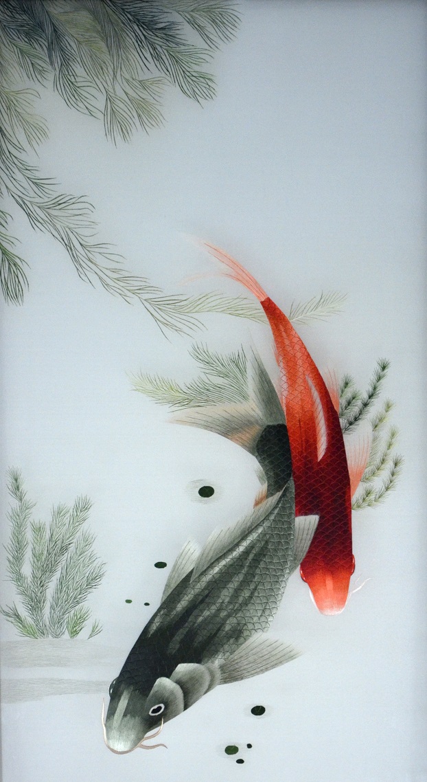 【產(chǎn)品名稱(chēng)】:蘇繡水草魚(yú)屏風(fēng)(雙面繡) (作品代碼:P-1201) 【產(chǎn)品規(guī)格】:圖案尺寸寬度60cm,高度125cm 外框整體尺寸寬100cm,高205cm 【產(chǎn)品工藝】:手工刺繡 【產(chǎn)品材質(zhì)】:真絲面料+雞翅木框+桑蠶絲線+玻璃 【產(chǎn)品包裝】:木箱包裝,用海綿包扎,確保運(yùn)輸安全 【出廠價(jià)】:16000元 【市場(chǎng)零售參考價(jià)】:32000-42000元 【產(chǎn)品運(yùn)輸】:我司負(fù)責(zé)發(fā)往客戶指定地點(diǎn),蘇州附近城市可送貨上門(mén)! 【產(chǎn)品說(shuō)明】:此款水草魚(yú)雙面繡屏風(fēng),是由蘇州工藝師耗時(shí)數(shù)個(gè)月精心手工刺繡而成,刺繡圖案以中國(guó)傳統(tǒng)的魚(yú)為題材繡工精細(xì),寓意深刻,符合國(guó)人對(duì)傳統(tǒng)文化的保護(hù)和對(duì)未來(lái)社會(huì)的美好向往,整幅作品顏色搭配均勻過(guò)渡自然,屏風(fēng)的框架選用進(jìn)口的雞翅木為料,是蘇繡屏風(fēng)中的珍稀作品。是居家和辦公的重要裝飾品之一!歡迎親臨嬌古蘇繡展示廳觀看實(shí)物! 【作品欣賞】 .jpg)