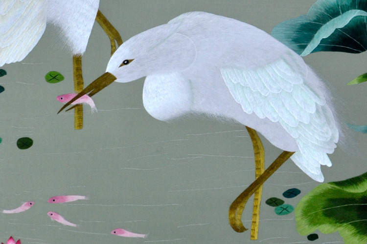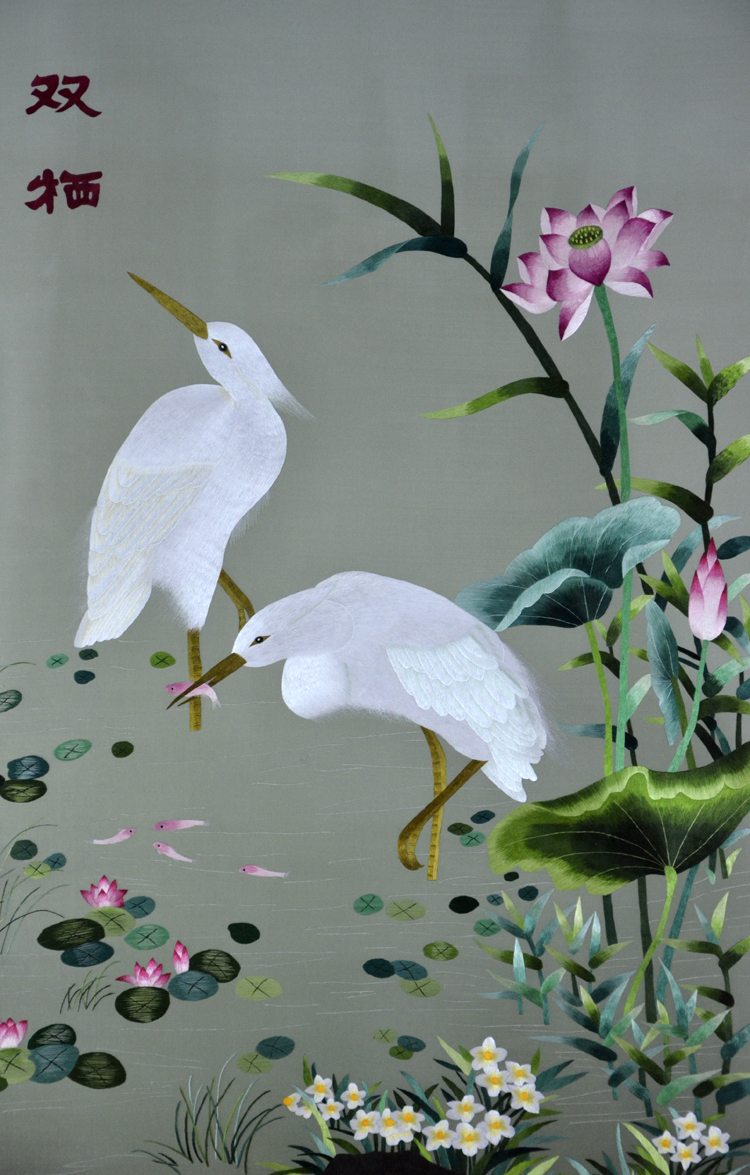 【產(chǎn)品名稱】:白鷺雙棲玄關(guān)(雙面繡) (作品代碼:P-1211) 【產(chǎn)品規(guī)格】:圖案尺寸寬度70cm,高度110cm 外框整體尺寸寬86cm,高168cm 【產(chǎn)品工藝】:手工刺繡 【產(chǎn)品材質(zhì)】:真絲面料+雞翅木框+桑蠶絲線+玻璃 【產(chǎn)品包裝】:木箱包裝,用海綿包扎,確保運(yùn)輸安全 【出廠價(jià)】:12000元 【產(chǎn)品運(yùn)輸】:我司負(fù)責(zé)發(fā)往客戶指定地點(diǎn),蘇州附近城市可送貨上門(mén)! 【產(chǎn)品說(shuō)明】:此款白鷺雙棲玄關(guān)雙面繡,是由蘇州工藝師耗時(shí)兩個(gè)月精心手工刺繡而成,顏色搭配均勻過(guò)渡自然,屏風(fēng)的框架選用雞翅木為料,此款蘇繡屏風(fēng)適合居家和辦公裝飾!歡迎親臨嬌古蘇繡展示廳觀看實(shí)物! 【作品欣賞】 .jpg)