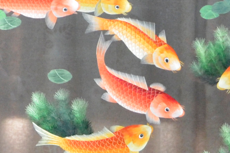 【產(chǎn)品名稱】:年年有余屏風(fēng)(雙面繡) (作品代碼:P-1212) 【產(chǎn)品規(guī)格】:圖案尺寸寬度140cm,高度85cm 外框整體尺寸寬188cm,高186cm 【產(chǎn)品工藝】:手工刺繡 【產(chǎn)品材質(zhì)】:真絲面料+雞翅木框+桑蠶絲線+玻璃 【產(chǎn)品包裝】:木箱包裝,用海綿包扎,確保運輸安全 【出廠價】:18000元 【產(chǎn)品運輸】:我司負(fù)責(zé)發(fā)往客戶指定地點,蘇州附近城市可送貨上門! 【產(chǎn)品說明】:此款年年有余雙面繡屏風(fēng),是由蘇州工藝師耗時兩個月精心手工刺繡而成,刺繡圖案以水草荷花魚為題材繡工精細(xì),給人清新愜意之感,顏色搭配均勻過渡自然,屏風(fēng)的框架選用雞翅木為料,此款蘇繡屏風(fēng)中適合居家和辦公的裝飾!歡迎親臨嬌古蘇繡展示廳觀看實物! 【作品欣賞】 .jpg)
