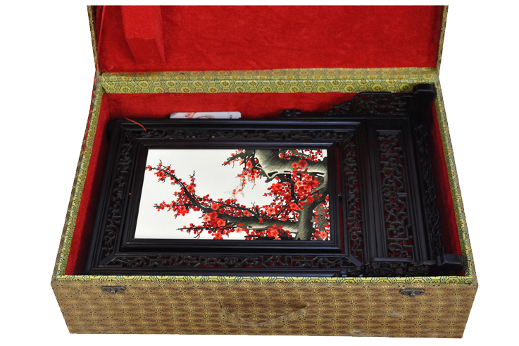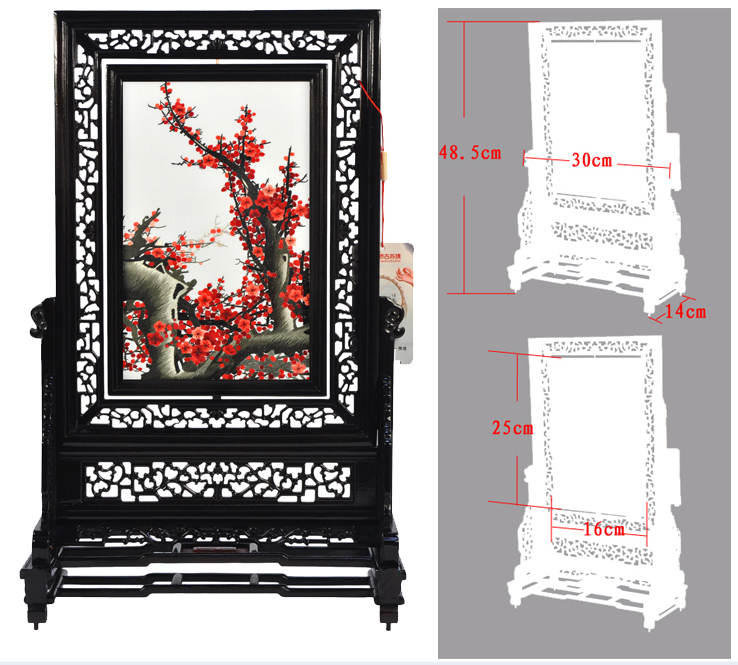 【品 牌】:嬌古 (作品代碼SMX-1258) 【品 名】:紅梅(手工蘇繡) 【品 質(zhì)】:6絲刺繡 (蘇繡小知識:1根蘇繡絲線可分為16絲,中檔刺繡皆為10絲所繡,中高檔刺繡皆為6-8絲,高檔刺繡皆為4-6絲,精品刺繡皆為1-4絲) 【尺 寸】:高約48.5cm,長約30cm,寬約14cm 畫心:長約25cm,寬約16cm 【產(chǎn)品工藝】:手工刺繡 【絲線材質(zhì)】:蠶絲線 【寓 意】:梅花是我們中華民族與中國的精神象征,具有強大而普遍的感染力和推動力。梅花象征堅韌不拔,不屈不撓,奮勇當先,自強不息的精神品質(zhì)。 【用 途】:家居裝飾及政府禮品、個人收藏、外賓禮品、生日禮物、賀壽禮品、領(lǐng)導(dǎo)升遷、商務(wù)禮品等。 .jpg)