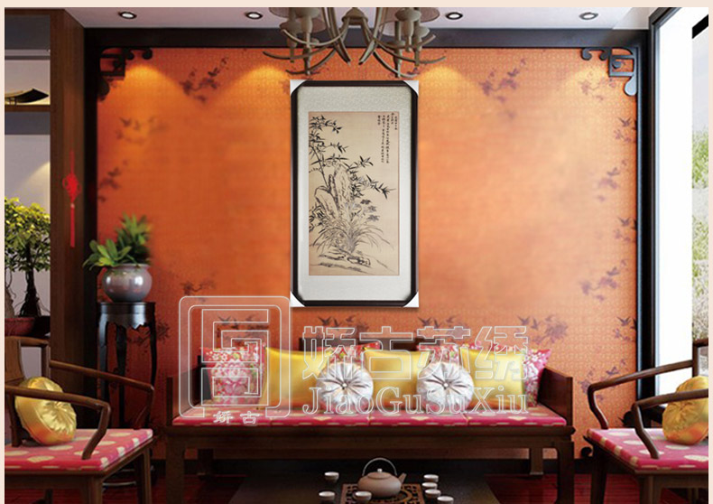【品 牌】:嬌古 (作品代碼 D-1069)【品 名】:韻林三友裝飾畫【尺 寸】:畫心尺寸50*90cm 整體尺寸70*125cm【產(chǎn)品工藝】:手工刺繡【絲線材質】:蠶絲線 【用 途】:政府禮品、個人收藏、外賓禮品、生日禮物、賀壽禮品、領導升遷、出國禮品等等。【出廠價格】:4200元