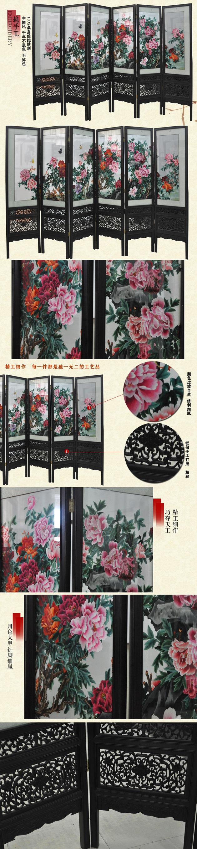 【產(chǎn)品名稱】:國色牡丹(雙面繡) (作品代碼:zp-1528) 【產(chǎn)品規(guī)格】:圖案尺寸寬度100cm/扇,高度43cm/扇 外框整體尺寸寬198cm/扇,高51cm/扇 【產(chǎn)品工藝】:手工刺繡 【產(chǎn)品材質(zhì)】:真絲面料+雞翅木+桑蠶絲線+玻璃 【產(chǎn)品包裝】:木箱包裝,用海綿包扎,確保運(yùn)輸安全 【出廠價(jià)】:44800元 【產(chǎn)品運(yùn)輸】:我司負(fù)責(zé)發(fā)往客戶指定地點(diǎn),蘇州附近城市可送貨上門! 【產(chǎn)品說明】:國色牡丹雙面繡屏風(fēng),是由蘇州工藝師耗時(shí)數(shù)個(gè)月精心手工刺繡而成,刺繡圖案以國花牡丹為題材繡工精細(xì),簡約大方,顏色搭配均勻過渡自然,屏風(fēng)的框架選用進(jìn)口的雞翅木為料,是蘇繡屏風(fēng)中的經(jīng)典作品。是居家和辦公的重要裝飾品之一!歡迎親臨嬌古蘇繡展示廳觀看實(shí)物! .jpg)